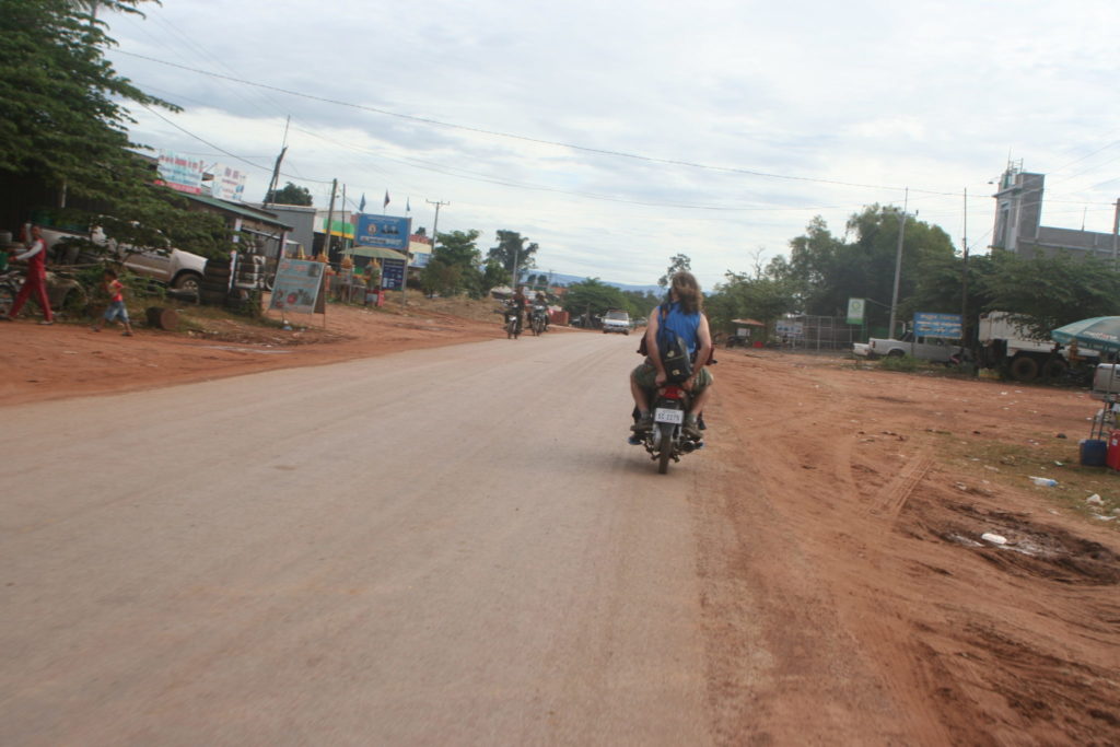 As soon as we went out after breakfast to get into the village center to find someone to take us there with a motorbike,  2 guys on motorbikes were already coming our way. They immediately phoned a guy who spoke kind of english and Phillip negotiated a price to give us a lift to Prasat Preah Vihear and back, 11,5 $ each. The ride to the ticket booth of the area took us 40 minutes on the back of these uncomfortable motorbikes. My ass hunted more than after 6 hours of cycling😂